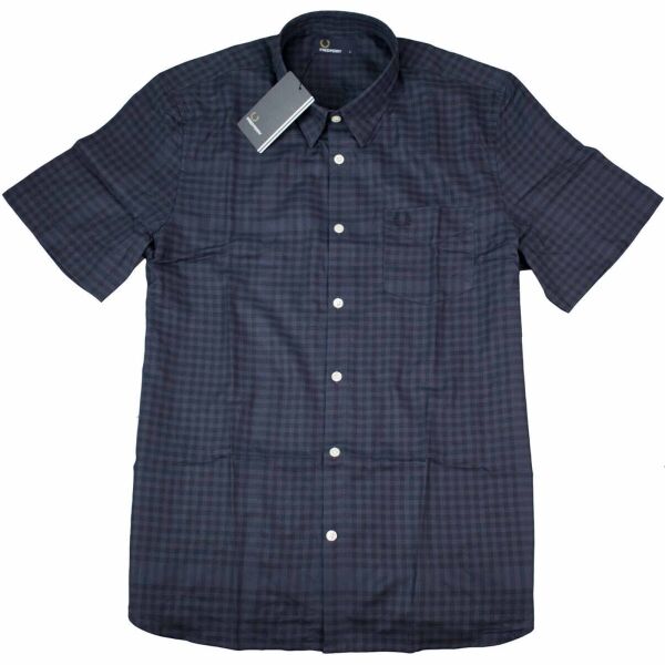 Originales Fred Perry Kurzarmhemd aus Dunkelblau / Schwarz kariertem Baumwollstoff - mit Brusttaschen und edler Logostickerei - Perfekte Passform und Hervorragende Qualität - Ein echter Klassiker der in keinem Kleiderschrank fehlen darf