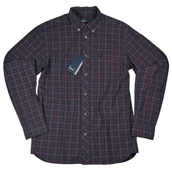 Fred Perry Herren Button Down Langarmhemd M1324 799 Mahogany Tartan Shirt 7116
