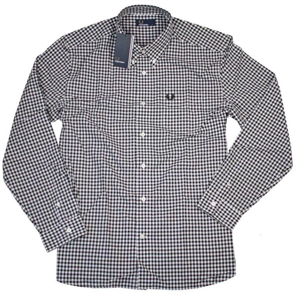 Fred Perry Herren Button Down Langarmhemd M6533 100 Schwarz Weiß Kariert 7520