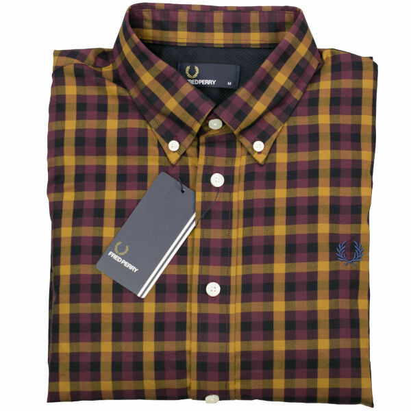 Fred Perry Herren Button Down Langarmhemd M8290 608 Burgundy 5773