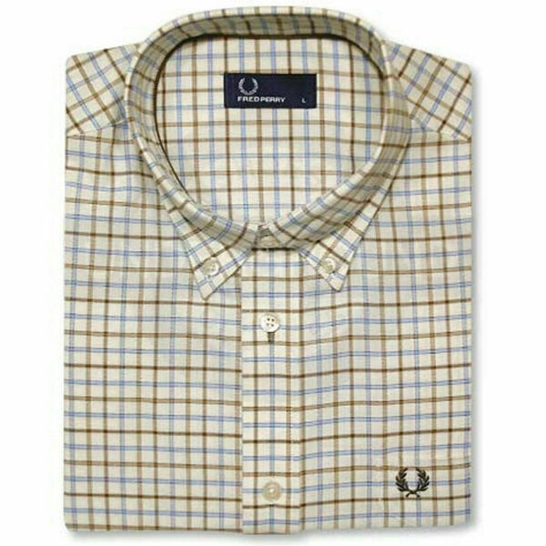 Fred Perry Herren Button-Down Langarmhemd M9272 412 Beige Creme Kariert 5693