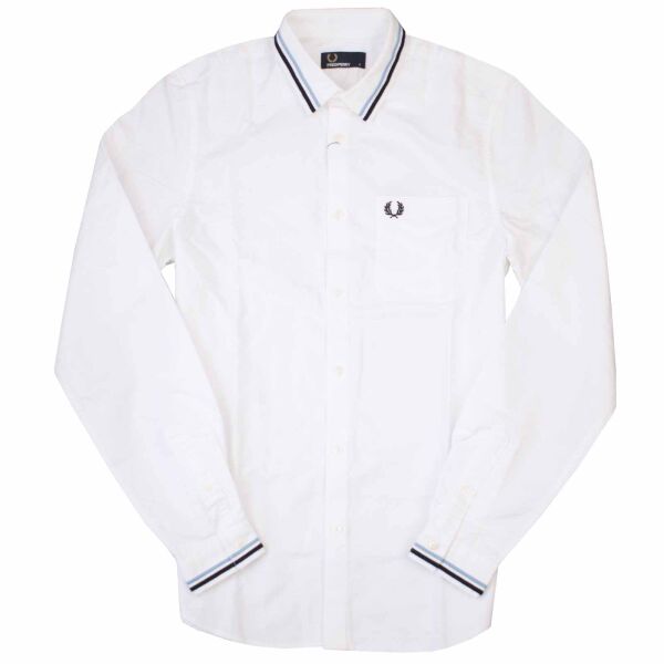 Fred Perry Herren Langarmhemd M4266 873 Weiß Streifen 6120