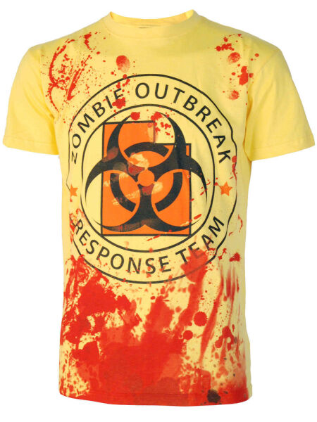 Darkside T-Shirt Zombie Outbreak Blood Splatter Horror Blut Halloween Gelb 5005