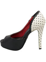 TUK Damen Peep Toe Pump Schwarz Cream Gepunktet High Heel Rockabella A8182 5029