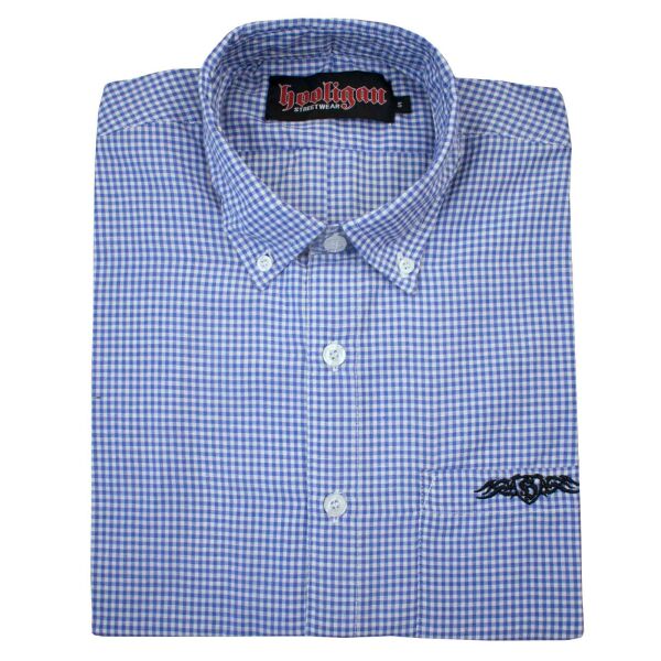 Hooligan Streetwear Herren Hemd Button-Down Kurzarm Kariert Ultras Farbauswahl