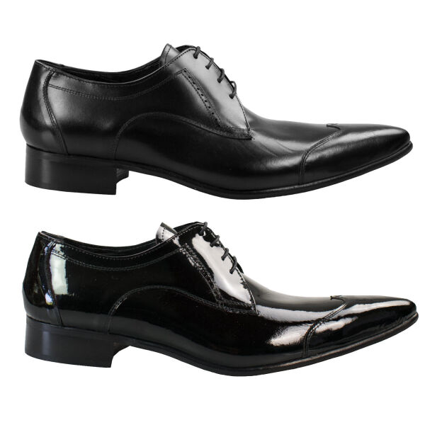 Lucky Dice Herren Winkelpicker Lack Leder Spitz Rockabilly Gothic Schwarz