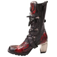 New Rock Damen Stiefel M6591 Boot Flamme Rot Metallabsatz 7028