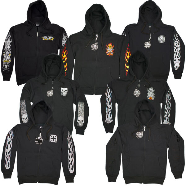 Diese coole Sweatjacke von No Way überzeugt durch ihr auffälliges Design und hochwertige Verarbeitung. Das Hoodie verfügt über ein großes, qualitativ hochwertig gesticktes Motiv auf dem Rücken, das sofort ins Auge fällt, sowie ein kleineres Motiv auf der Brust. Die bestickten Ärmel setzen zusätzliche Akzente und machen die Jacke zu einem echten Hingucker.