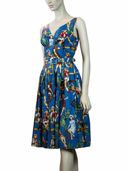 Vanity Project Damen Kleid Blau Cowgirl Pin up Rockabilly Vintage Petticoat 5001