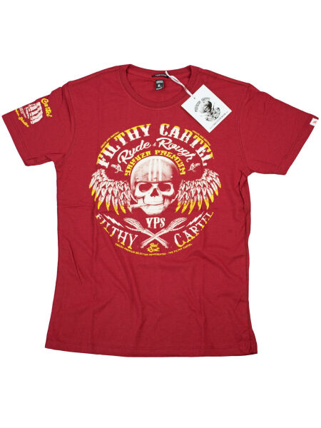 Yakuza Premium Herren-T-Shirt Rot Totenkopf Rude And Rough S - 4XL Kurzarm 5085